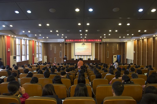 开学典礼结束后,本期团校第一讲正式开始。为了纪念长征胜利80周年,本期团校有幸邀请到中共天津市委党校党史党建部周多刚教授为我院基层团组织干部进行讲座。周多刚教授以“不忘初心,继续前进”为主题,通过讲解近代以来共产党人的革命、建设、改革的历史,阐述了自清末中国被列强瓜分,到共产党的成立,中华民族同仇敌忾,共赴国难,同世界列强展开了英勇顽强的斗争,最终取得了革命的胜利,谱写了惊天地、泣鬼神的壮丽史诗,带领着中国逐渐走向富强。通过重温长征历史,使广大学生了解长征的历史不仅是工农红军战胜敌人围追堵截,克服恶劣自然环境,最终取得圆满胜利的历史,更是一部伟大的革命英雄主义的史诗,通过了解这段历史使广大学生了解革命乐观主义精神和工农红军的艰苦奋斗精神,长征的胜利挽救了中国共产党,挽救了中国工农红军,挽救了中国革命,红军长征铸就了伟大的长征精神,长征精神为中国革命不断从胜利走向胜利提供了强大精神动力。 周多刚教授呼吁广大团员干部要认真学习习近平总书记在“七一”上的重要讲话,不忘初心,继续前进,珍惜老一辈共产党人留下的胜利果实,牢记历史,拒绝战争,珍惜和平。周多刚教授以其风趣诙谐的语言和生动形象的例证博得了全体学员的热烈掌声。
