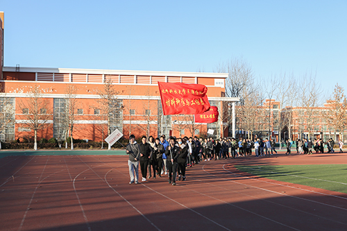 下午3:30,冬季长跑启动仪式正式开始,党委副书记叶振楠致辞并宣布2016年冬季长跑活动启动,500余名学生在操场上开始长跑,拉开了我院冬季长跑活动序幕。随后进行纪念一二.九运动长跑火炬接力比赛,比赛共有各系组合报名的7支代表队参加,各队分别派出1名老师、4名女生、6名男生参加比赛。比赛开始,第一棒由各队老师出战,随后由学生选手上场,大家在跑道上展现出飒爽英姿,不畏严寒,全力以赴为各自代表队争夺荣誉,各代表队亲友团在旁摇旗呐喊,为他们助威,场面热闹非凡,经过激烈的比赛,最终,机械系和外语系组成的代表队获得冠军,信息系代表队和经济系代表队分别获得亚军和季军。