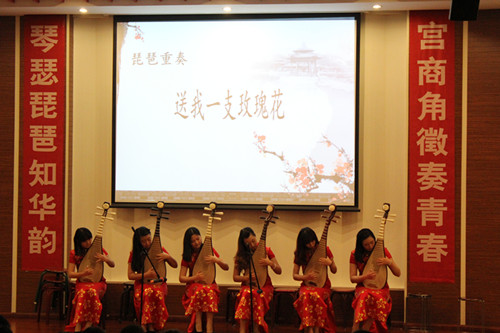 本次音乐会由艺术教育中心主办,学生艺术团民乐团承办。演出开始前,学术报告厅内座无虚席。在一段精彩的开场视频后主持人宣布演出正式开始,在学生艺术团民乐团指导老师陈倩的指挥下,一首《花好月圆》完美开场,紧接着陈倩老师为观众详细的介绍了学生艺术团民乐团的基本编制,并且让每个声部弹奏了一小段乐曲,使观众能够更好的了解每种乐器的独特音色,从而更深入的理解民族器乐。接下来学生艺术团民乐团带来了一首大合奏《阿眉族舞曲》,我国台湾省的高山族是一个能歌善舞的民族,作为高山族人口最多的一支族群,阿眉族人更是个中翘楚,他们用歌舞抒发情感,用歌舞赞美生活,从歌舞中获得力量,这首曲子更是将这种精神完美的展现出来。之后学生艺术团民乐团为我们带来了一个新颖的节目,音乐相声。通过唢呐、笙和语言的巧妙结合,表现了我国传统民族乐器的魅力。随后,学生艺术团民乐团带来了传统曲目古筝重奏《梁祝》和琵琶重奏《送我一支玫瑰花》,一个婉转凄美,一个热情似火,两曲相互呼应,充分展现了这两种传统乐器的特色与魅力。上半场的演出在琵琶声中结束,随后的串场视频记录了学生艺术团民乐团这些年成长的点点滴滴,有欢笑,有泪水,有失落,有成功。往事历历在目,不少团员都流下了感动的泪水。下半场由《风居住的街道》温情开场,二胡与键盘,一个古典,一个现代,一个深沉,一个开朗,一个韵味悠长,一个清新明快,再配之伴舞的柔美,三者搭配交织,互诉衷肠,仿佛一场穿越时空的对话。紧接着民乐团又为大家奉上一首琵琶曲《欢沁》,琵琶在曲中的表现力颠覆了人们对琵琶曲的常规认识,而钢琴的伴奏则给人一种现代气息,闭上双眼,仿佛看见一群孩童嬉闹于林间或市井。随后,低音声部为大家奉上了一曲由阮族乐器改编的《加州旅馆》。此曲由阮族乐器,低音贝司,吉他等乐器改编的《加州旅馆》无论从视觉还是听觉上都给大家带来了耳目一新的感觉。接着在大提琴低沉婉转与二胡细腻凄凉的旋律中,响起了那首熟悉的《菊花台》,相信在场的观众会在二胡与大提琴的缠绵中体会到“满城尽带黄金甲”的爱恨情仇。凄美的《菊花台》之后是一首充满异域风情的唢呐独奏《阳光》。唢呐一直是传统民乐中最为高亢的乐器之一,在传统民乐现代化的进程中,现代人赋予了唢呐更多的韵味,演绎者纯熟的技巧,活泼欢快的旋律使人眼前一亮,不由得拍手叫好。众所周知,休闲游戏文化是新世纪新兴文化的一部分,在不断发展的过程中,诞生了许多深受大众喜爱的佳作,接下来是民乐小合奏《斗地主》。此曲是对游戏音乐的演绎,让现场的观众们领略了新民乐的别样风采。最后,音乐会进入尾声。学生艺术团民乐团为大家带来了一曲他们的获奖曲目《瑶族舞曲》。该作品创作于20世纪50年代,采用单乐章复三段体结构。作曲家以民间舞曲《长鼓歌舞》为素材,用管弦乐的手法,丰富、生动的展现了瑶族民众欢歌热舞的喜庆场面。乐曲用优美的旋律,表现了能歌善舞的瑶族人民的生活情貌。一曲结束后,掌声经久不息。于是民乐团又为大家带来了一首返场曲目《拉德斯基进行曲》,在掌声与音乐的交织中,音乐会终于圆满的落下了帷幕。