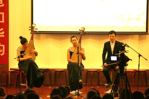4月27日晚19:00,我院学生艺术团民乐团“遇见民乐,奏响青春”纪念五四运动专场音乐会于理工图书馆学术报告厅隆重举行,我院团委书记罗富臣,机械系党总支书记郭雅娟,外语系党总支书记何红升,艺术教育中心主任林碧芸,学生艺术团及在校师生共同欣赏了精彩的演出。