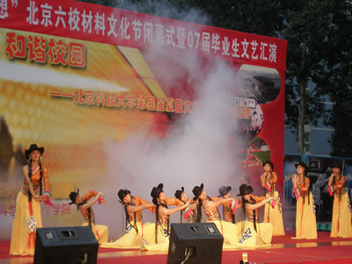 6月16日晚,由北京科技大学主办、北京科技大学材料科学与工程学院承办的“青春,和谐,理想”北京高校材料文化节闭幕式暨材料学院07届毕业生文艺汇演在北京科技大学篮球场举行。北京科技大学、清华大学、北京航空航天大学、北京理工大学、北京化工大学、北京林业大学等高校领导作为嘉宾参加晚会。北京科技大学研工部部长、研究生院副院长何进,天津学院综合办公室主任李帅、北京科技大学团委副书记汪文明等亲临晚会现场。