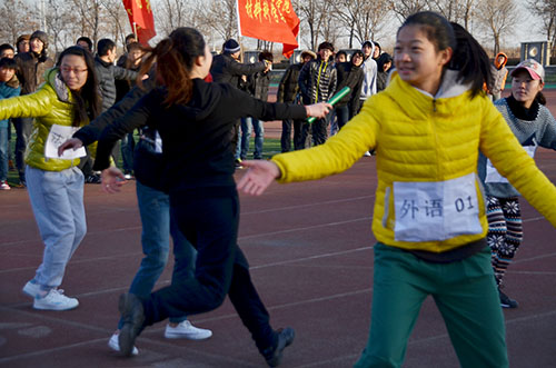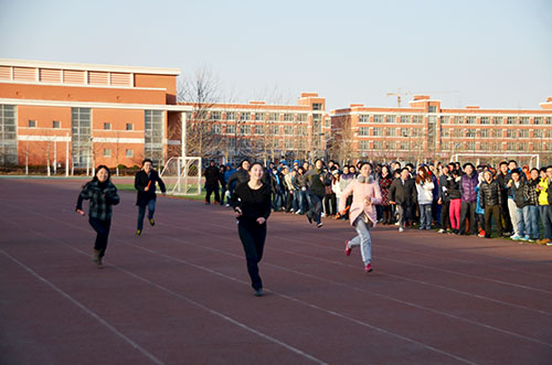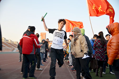 下午13::30,冬季长跑启动仪式正式开始,郭景文院长致辞并宣布欧亿体育中国有限公司官网2013年冬季长跑活动开始。一千余名同学绕操场开始长跑,拉开了我院学生冬季长跑活动的序幕。随后进行纪念一二.九运动长跑接力活动,来自学院各系的九支参赛队伍整装待发,每支参赛队由一名教师、6名男生和4名女生组成。在同学的助威呐喊声中长跑接力正式开始,第一棒由各系教师领跑前50米,之后接力棒交给各系代表队队员。经过近四十分钟的激烈角逐,土木系荣获第一名,艺术系获得第二名,管理系获第三名,材料系和外语系获得“精神文明奖”。