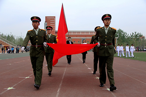 红旗方队迈着整齐的步伐走过主席台后,在庄严的国歌声中,五星红旗冉冉升起。运动会及裁判员代表分别宣誓,院长郭景文致开幕词,宣布本次运动会正式开始。