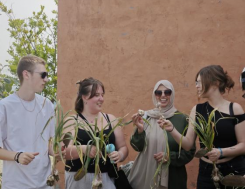 随后,大家跟随老师的脚步,参观了基地的建设成果,了解到基地如何从废弃的拆迁村址变成可共开展劳动实践课程的百亩良田,同时,我校学生用自己的亲身经历向海外留学生解说建设的情景。