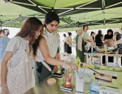 5月29日下午,天津商业大学的20名海外留学生在我校外国语学院老师和学生的陪同下走进劳动实践基地,了解二十四节气的起源与基地发展建设历程,体验大蒜采收和爆米花制作的乐趣,在农耕实践中触摸中华文化的脉搏。