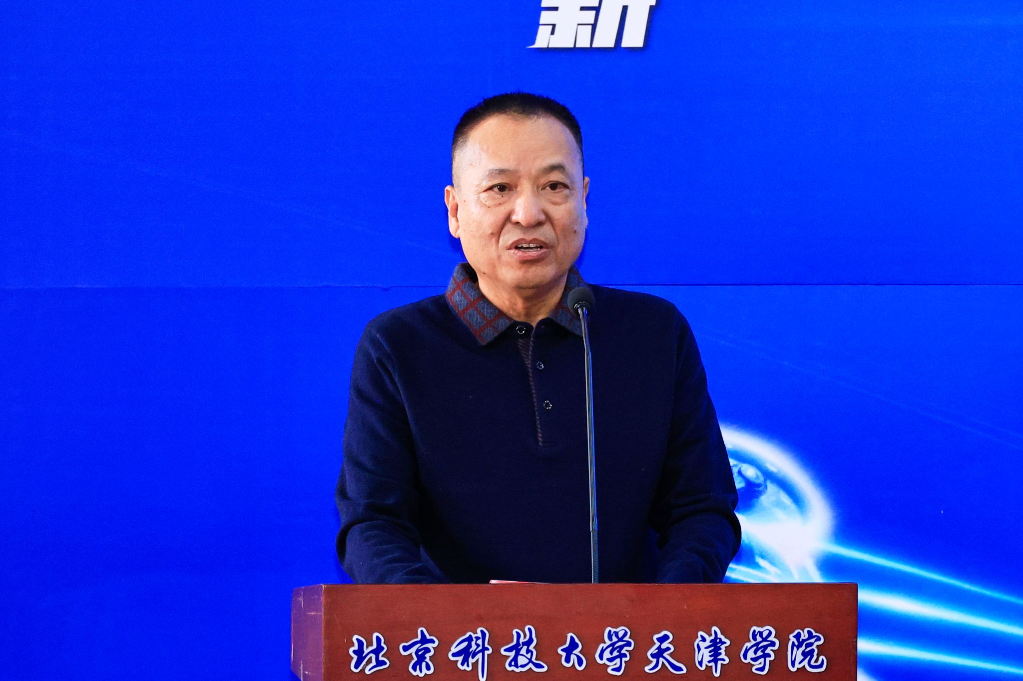 北京科技大学无锡校友会会长、江苏无锡鼎飞航空科技有限公司董事长高晓峰发表致辞。他表示,天津学院主动破局,整合资源成立低空技术与工程学院,并邀请企业共同参与建设,是北科大“服务国家战略”优良传统的生动体现。将努力推动企业实战资源与天津学院学科优势的深度融合,携手把产业学院做实、做强、做出特色。