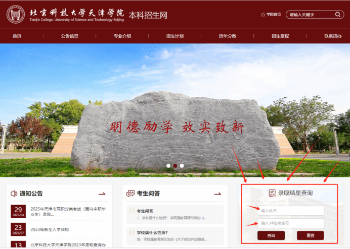 在“录取结果查询”输入姓名和考生号即可