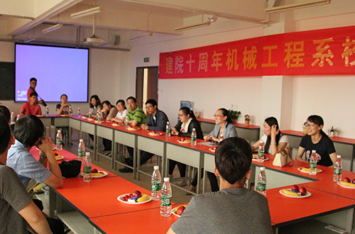 参观过后我系在12教4层多媒体教室一同开展了主题为“建院十周年机械工程系校友座谈会”,会上校友代表纷纷发言,诉说着离校后的人生经历,并将他们的人生经验和处世之道传授给后辈,将“不甘于后”的精神发扬光大。之后观看了机械系十年来一同走过的时光短片。他们劝诫年轻学子“珍惜当下、包容万物、学会感恩”,要把每一个能把握的机会转化为未来成功的筹码,并表达了对母校深深地祝福。
