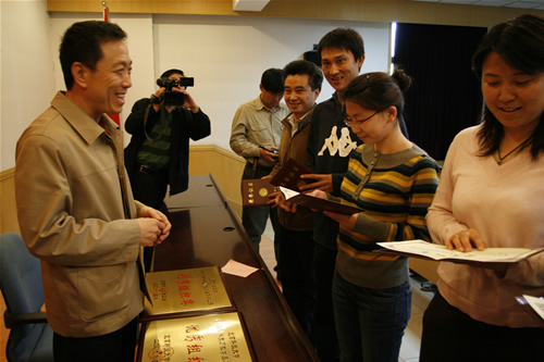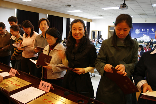 北京科技大学党委副书记张文明为获奖教师颁发证书