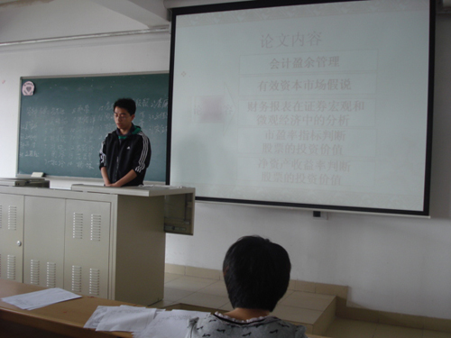 5月16日,管理系在9教进行06级会计和管信专业毕设中期答辩。管理系主任梁桂川教授、党总支副书记张琦、06级学生毕业论文指导教师、06级学生辅导员迟铁、冯海燕与会,管理系06级全体学生参加或观摩答辩。