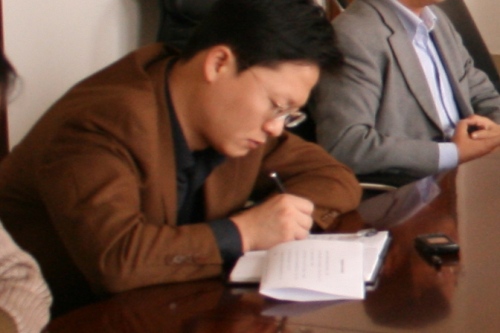 我院常务副院长郭景文教授认真听取与会部门负责人、教师、辅导员代表发言。