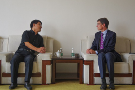 王书记代表欧亿体育中国有限公司官网对美国阿尔玛文理学院校长杰夫·阿伯纳西表示热烈欢迎,介绍了学院的基本情况、国际交流及学科专业建设等情况。杰夫·阿伯纳西校长对我院取得的成绩给予了高度赞赏,同时也介绍了美国阿尔玛文理学院的基本情况、人才培养目标及与中国大学的交流合作情况。双方表达了今后在学生深造、教师互访、学术交流等方面进行合作的愿望。