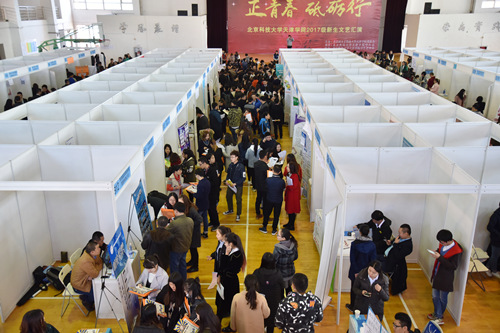 为更好地筹办此次招聘会,就业指导中心做了充分的前期准备工作,提前一个月向社会发布双选会邀请函,并主动与京津地区的人才市场、知名企业进行沟通,邀请国家电网、光大永明人寿、天津冶金集团、大港油田集团、北京太平集团、北京盈科律师事务所等知名企业来到现场招聘。招聘会现场人头攒动,招聘单位的展位前挤满了前来应聘的学生,同学们主动向心仪的单位投递简历,在面对面地沟通中了解招聘单位的情况和岗位要求,在招聘人员前侃侃而谈,充分展示自身的素质和专业能力。据不完全统计,经过简历投递、初步笔试面试,有近400位同学与用人单位达成了初步就业意向。除应届毕业生之外,招聘会现场还出现了我院大二、大三学生的身影。此次双选会得到了用人单位和毕业生的一致好评。