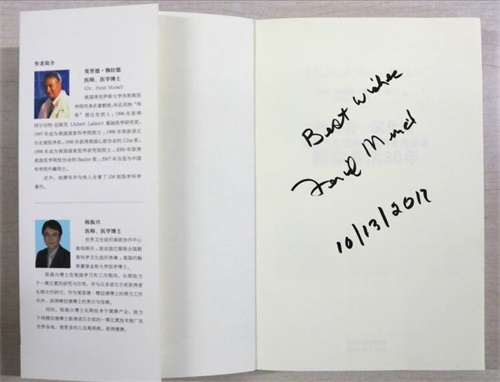 斐里德•穆拉德教授在赠予我院著作《神奇的一氧化氮》上签字