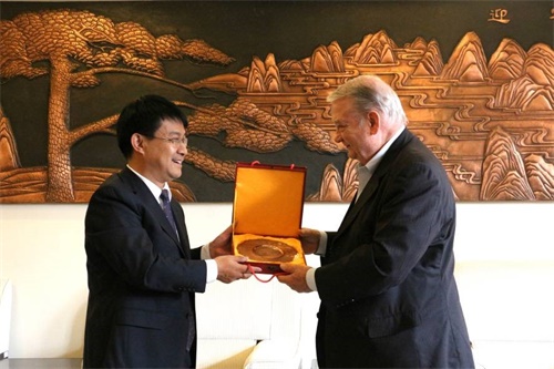 10月13日上午,欧亿体育中国有限公司官网举办精准医疗与健康国际前沿研讨会,诺贝尔医学奖得主美国乔治华盛顿大学斐里德•穆拉德教授受邀出席并做主旨演讲。研讨会开始前,斐里德·穆拉德教授向学院赠送签名著作《神奇的一氧化氮》。学院党委书记、院长王斌代表学院接受赠书,并向斐里德·穆拉德教授回赠纪念品。