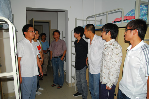 9月21日晚,我院领导赴新生宿舍楼看望新生。常务副院长郭景文教授、党委书记、副院长王斌教授、副院长曹连东、财务总监肖祖刚、实验技术中心主任、信息工程系主任许学东、学院办公室主任李帅、学生处处长盛佳伟、基建后勤处处长王兴元、财务处处长王俊敏、教务处副处长吴平及各系党总支书记冒着小雨,分成四组看望了新生。