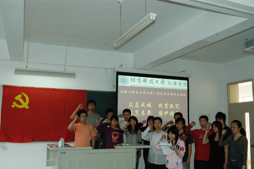 全体党员在党旗面前宣誓:“时刻心系民族命运、心系国家发展、心系人民福祉,积极努力工作学习,冷静理智、依法有序表达爱国情感。强化社会责任感和历史使命感,把个人的成长进步融入到推动国家发展、民族振兴的时代洪流中去,矢志为实现远大理想而不懈奋斗。”