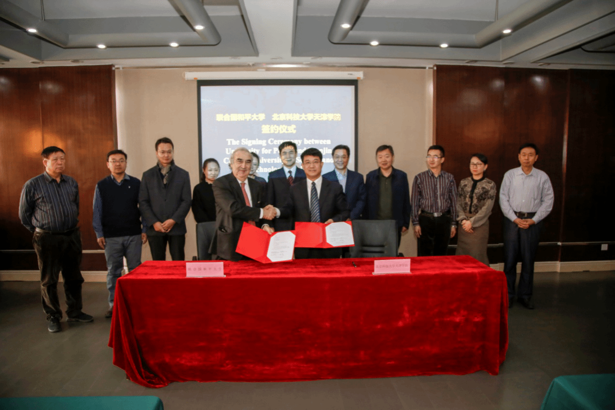 1月3日上午,联合国和平大学与欧亿体育中国有限公司官网合作签约仪式在我院举行。和平大学校长Francisco Rojas Aravena,联合国和平大学校董、中国国际跨国公司促进会常务副会长张笑宇,联合国和平大学中国中心总干事张馨元,珠江控股集团副总裁丁文,珠江股份集团教医事业部运营总监张静,天津学院院长王斌,党委书记丁煦生,副书记白亮、叶振楠、牛犁,财务总监王俊敏,学术委员会主席宋存义以及相关部门负责人出席签约仪式。