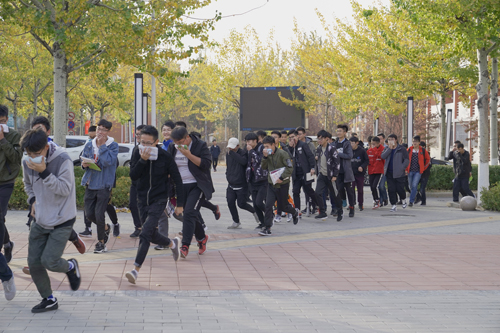 首先进行模拟逃生演练,当警笛声响起,师生在安保人员指挥下按疏散线路从宿舍内迅速撤离,到达指定安全地带集合。疏散撤离过程中师生秩序井然,展现出良好的应急疏散和自救能力。随后保卫处消防科项树磊科长为大家讲解展示了学院配备的各型消防破拆救援工具。