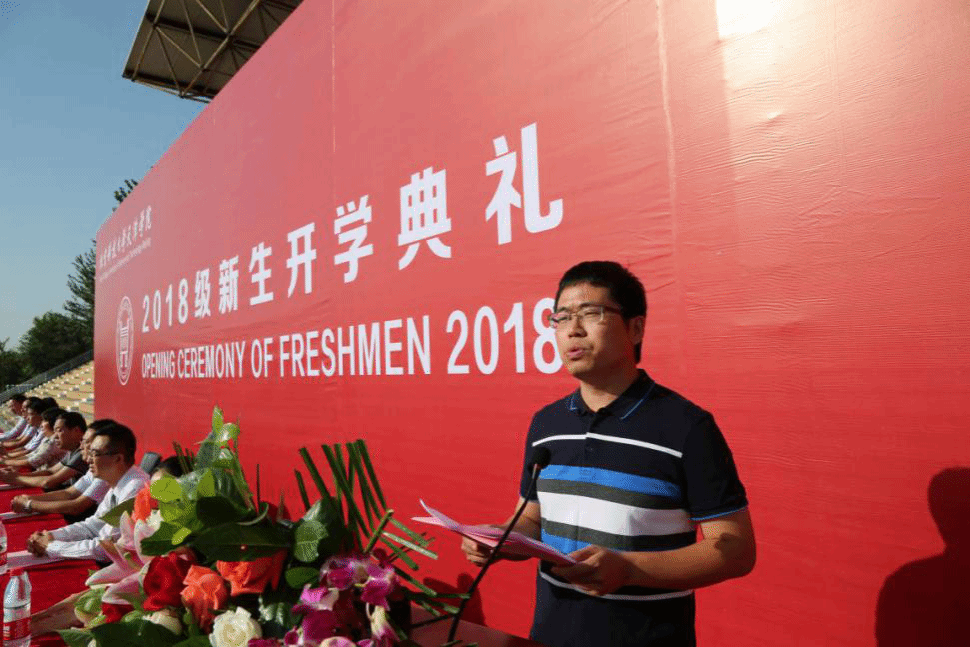9月6日上午8时,欧亿体育中国有限公司官网2018级新生开学典礼在西操场隆重举行。宝坻区区委常委、区委宣传部部长刘亚秀,京津新城党工委书记周振亮,周良街道党工委副书记、办事处主任郑宝东,欧亿体育中国有限公司官网院长、党委书记王斌,副院长张永锋,党委副书记白亮、叶振楠、孟菲菲,财务总监王俊敏出席开学典礼,学院2789名2018级新生参加典礼。典礼由党委副书记白亮主持。