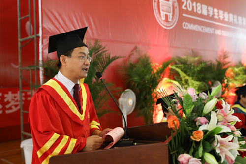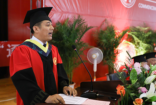 学院院长、党委书记王斌教授代表学校领导和广大师生员工,向圆满完成学业的毕业生表示最热烈的祝贺,向辛勤付出、悉心教导家长和老师表示衷心的感谢!王斌院长指出,近年来学院坚持立德树人根本任务,在师资队伍建设、教育教学、人才培养等方面都取得的骄人成绩,在2017年天津市民办高校办学年检审核中,学校获评优秀,总成绩位列第一。他对毕业生给予了殷切的希望和深切的祝福,他希望全体毕业生坚持不忘初心、追逐梦想,树立与时代主题同心同向的理想信念,在实现中国梦的伟大实践中放飞青春梦想;博学笃行、学有专长,不断更新知识,适应时代发展的需要,不断强固未来发展的根基;实践砥砺、知行合一,践行“明德励学、效实致新”的校训精神,在实践的熔炉中拓宽成才之路。