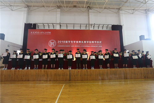 全体毕业生身着学士服、头戴学士帽依次上台,主席台领导为毕业生颁发学位证书。愿2018届毕业生,一路前程似锦、满径花香,勇做走在时代前面的奋进者、开拓者、奉献者,带着天院最温暖的祝福与最美好的回忆,朝向未来征途的星辰大海,筑梦远航!