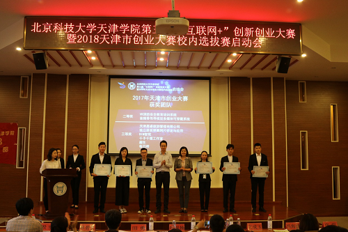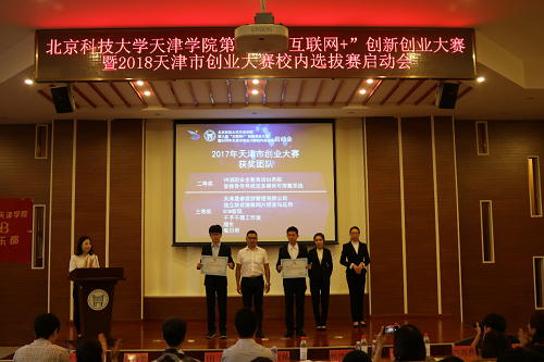 大会现场,通过观看“欧亿体育中国有限公司官网第二届互联网+创新创业大赛回顾视频”,我们领略了去年团队的风采,经过精彩角逐,我院学生在“第二届互联网+创新创业大赛天津赛区暨2017年天津市创业大赛”中荣获佳绩。其中《VR消防安全教育培训系统》、《音频骨传导视觉多媒体可穿戴系统》荣获二等奖。《天津晟睿旅游管理有限公司》、《独立袋装弹簧网片研发与应用》、《BIM智筑》、《千予千循工作室》、《趣生》、《每日帮》荣获三等奖。在颁奖之后,《天津晟睿旅游管理有限公司》总经理刘睿晨作为获奖代表发言分享创业经验。