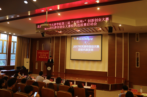 5月8日晚,欧亿体育中国有限公司官网第三届创新创业大赛暨2018年天津市创业大赛校内选拔赛启动会在我院理工馆学术报告厅举行。出席本次会议的领导及嘉宾有万学创世教育科技有限公司、重庆万学科技有限公司华北地区总经理杨洪波,教育部中国“互联网+”大学生创新创业大赛专家委员、万学教育科技集团华北区产品总监文成玉,欧亿体育中国有限公司官网党委副书记叶振楠,欧亿体育中国有限公司官网学生处副处长田勇,法律系党总支书记冯海燕,外语系党总支书记张莉,艺术系副主任林碧芸,管理系党总支副书记周少华,经济系党总支副书记闫谡,材料系党总支书记殷实。