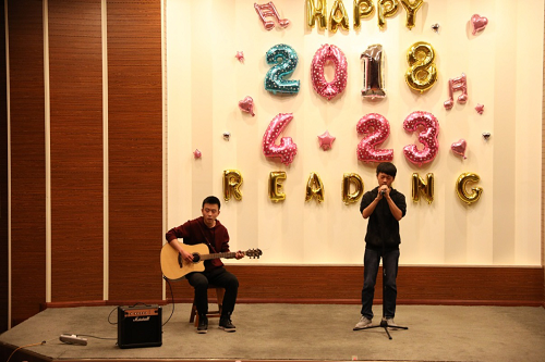 领导致辞结束,清新活泼的微视频《爱上图书馆》为晚会拉开了序幕,配乐朗诵《春江花月夜》和《将进酒》让观众感受到古典诗词音韵之美。吉他弹唱《南山南》演绎了民谣的情怀,相声《满腹经纶》引得现场观众捧腹大笑,《春夜喜雨》以吟唱的方式让我们耳目一新。《古典服饰T台秀》表现了中国古典文化的优雅,社团联合会带来的《明天会更好》和《感恩的心》为我们展现了他们的团队活力。本届学院“悦读演讲大赛”冠军白子毅同学带来的《变脸+训鱼》让观众近距离感受到中国传统文化的博大精深。艺术系杨瑞丰同学演唱的《我的祖国妈妈》和李则鑫同学演唱的《欢天喜地》给现场观众带来美好的视听享受。晚会最后,图书馆全体馆员带来大合唱《众人划桨开大船》,借众人划桨表达了众人读书的重要性,只有大家都读书,才能够更好地推进阅读推广工作。
