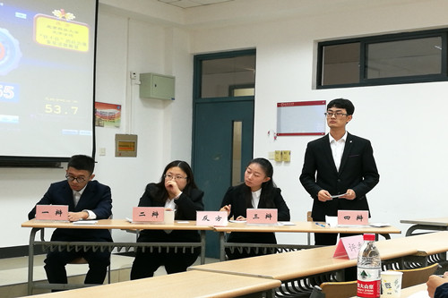 比赛全过程我方辩手充分发挥思辩能力,通过结合本方优势与对方漏洞深入论证与推断‘扶不扶’社会现象靠道德这一观点。四位辩手状态优良,逻辑灵敏,语言有力展开惊心动魄的辩论。在自由辩论与总结陈词两个激烈的环节中比赛被推向高潮,在场观众皆为双方辩手惊叹,比赛气氛一度紧张。我院法律系辩论队终以2:1的优势挺进四强,这是对我院辩论队以及所有教导者的热情反馈。