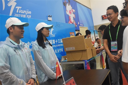 2017年9月7日晚七点,学院党委副书记叶振楠、学生处副处长孟祥瑜、团委书记殷实、团委副书记王研等赴宝坻体育馆慰问我院第十三届全运会羽毛球赛志愿者,我院志愿者督导教师林小茹、李光和学生志愿者代表陪同。