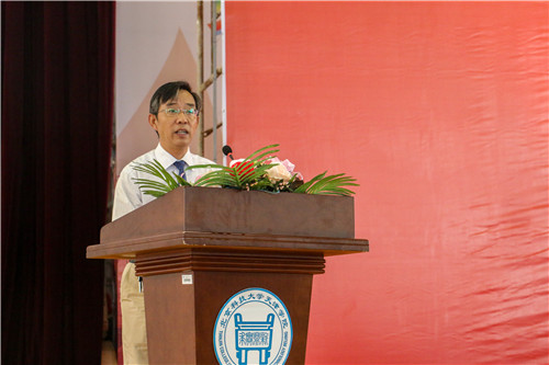 院长郭景文教授在开学典礼上致辞。他对全体2016级新生表示了衷心的祝贺和热烈的欢迎,希望同学们铭记并践行习近平总书记提出的“八字箴言”——“勤学、修德、明辨、笃实”;牢记“明德励学,效实致新”的校训;时时自问两个问题:第一,四年后我要成为什么样的人?第二、怎样才能达成我所确定的目标?并希望同学们把握金子般的年华,带上学校的期望和祝愿,带上热情和梦想,去开启属于自己的大学时代。