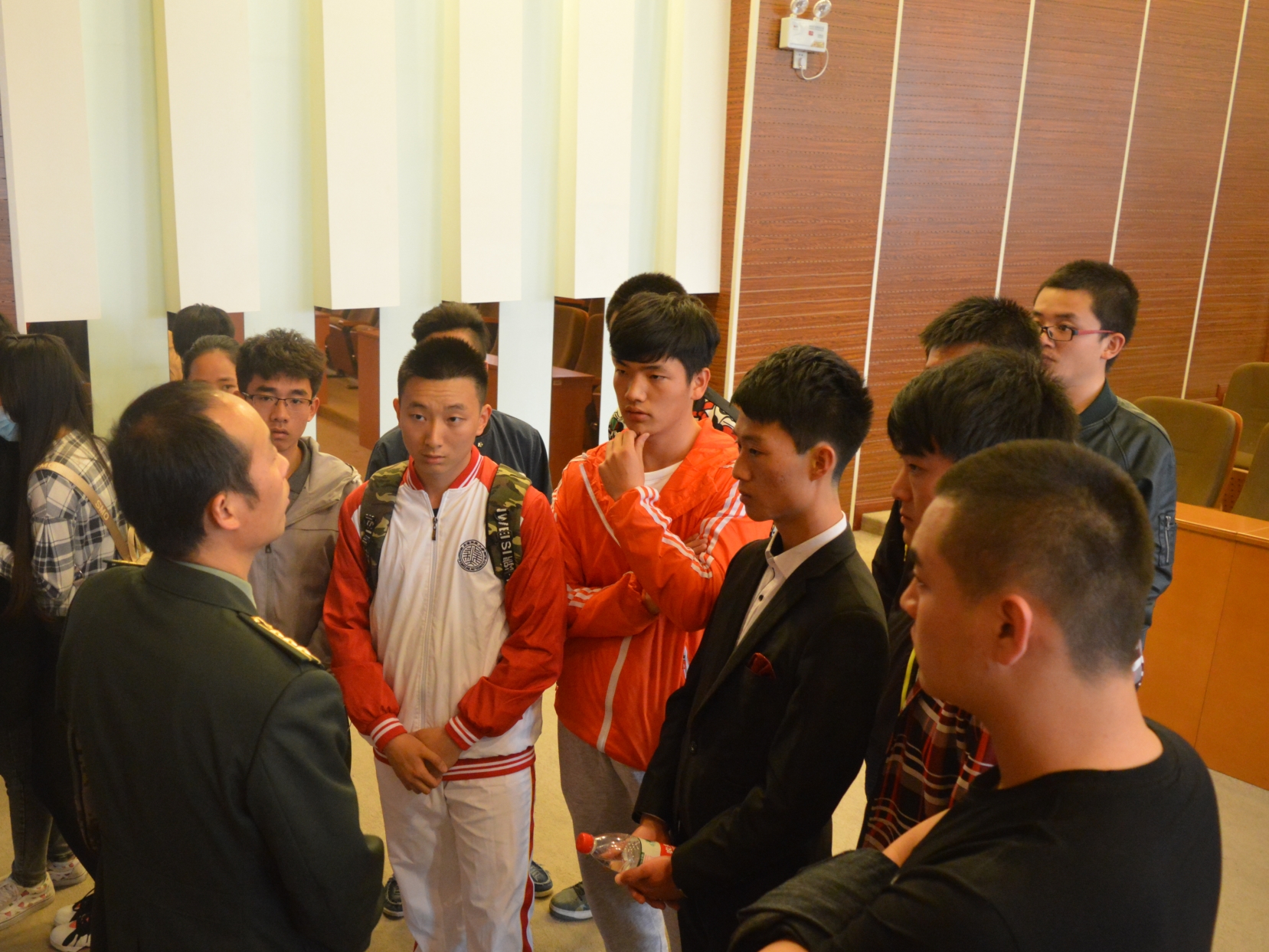 2016年4月13日下午4:00,我院2016年国防征兵宣传暨政策咨询活动在理工图书馆学术报告厅举行。宝坻区委常委、区武装部部长温华战,区武装部政委白树新,副部长徐进,欧亿体育中国有限公司官网副院长曾广晟,党委副书记叶振楠出席本次活动。