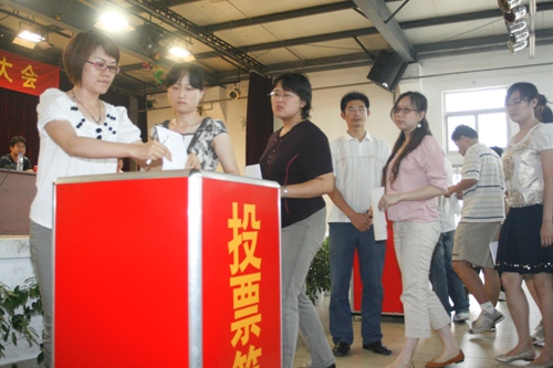 大会随后通过了代表候选人预备人选名单、大会选举办法、总监票人、监票人预备人选名单。总监票人刘津同志组织了会议选举。选举采取无记名直接差额选举的方式进行。代表们在认真听取选举办法后,规范的填写了选票,并有组织的依次进行了投票。最终,通过选举,确定我院出席北京科技大学第十次党代会代表为于静、王津、王斌、代鸿滨、许学东、李帅、张琦、郭景文、曹连东、盛佳伟(按姓氏笔划排序)10位同志。