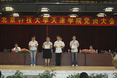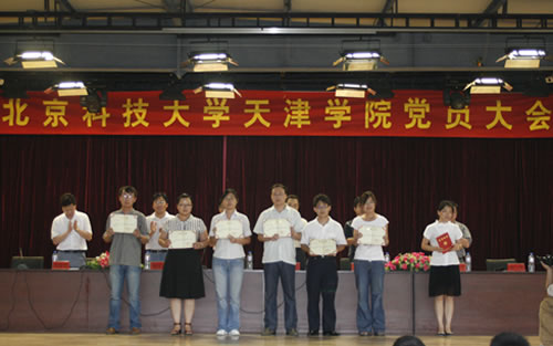 北京科技大学校长助理、天津学院院长张文明教授在会上作重要讲话,张院长讲到,从建院初期到现在三年的时间里,学院的教育教学思想逐步形成。“学风严谨,崇尚实践”的优良传统是科大本部办学半个多世纪的历史积淀,来之不易,我们要立足本职工作,把学校的光荣传统发扬光大;张院长对荣获2008年先进党支部、优秀共产党员、优秀党务工作者的党支部与党员同志表示祝贺,称赞他们为学院党建工作和发展所做的贡献,并号召全院党员同志向他们学习,提高和改进工作,争做模范,用自己的实际行动为学院的建设和发展贡献力量。张院长希望党员同志在学院党委的领导下,深入贯彻“三个代表”重要思想,坚持“围绕教育抓党建,抓好党建促教育”的工作思路,以开展保持共产党员先进性教育活动为契机,以实现“建设一流队伍、培育一流作风、创建一流成绩”为总体目标,以开展“双评”为载体,进一步总结经验,弥补不足,进一步搞好创塑活动和学生党建工作,使党员真正成为凝聚师生员工、推动学校发展、建设和谐校园的坚强战斗堡垒。
