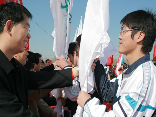 3月23日,天津市“第一届青少年环保节”启动仪式在宝坻区农垦集团里自沽农场举行, 天津团市委书记刘道刚、副书记毛汉发、宝坻区委副书记贾凤山、农垦集团总公司党委书汪占琪,副书记郭玉珍,和来自各行各业的志愿者及包括我院200多名学生在内的几所高校的学生参加了此次启动仪式。