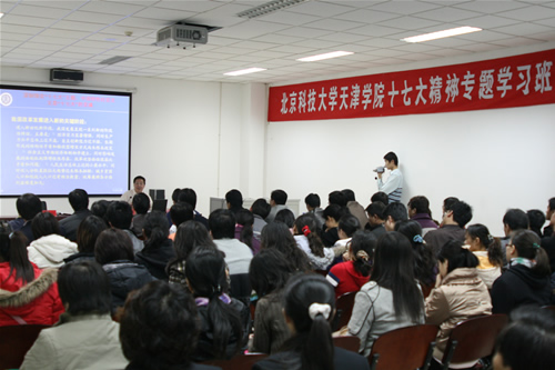 11月29日下午,我院在图书馆会议室举行院、处级十七大精神专题学习班首讲,北京科技大学党委书记罗维东莅临并作十七大辅导报告,首讲由北京科技大学校长助理、天津学院院长张文明教授主持。