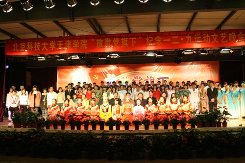 党委书记、副院长王斌教授对“放歌党旗下”纪念一二•九运动文艺晚会圆满成功表示了热烈的祝贺,并强调了文化艺术建设对提升大学生素质水平和推动学校全面和谐发展的重要作用。他激励更多的学子积极参与此类活动,创造积极、健康、向上的精神文化生活,发奋成才。希望广大师生在党的十七大精神指引下,认真总结经验,继续开拓创新,不断提高艺术水平,倾力打造天津学院的文化艺术精品。