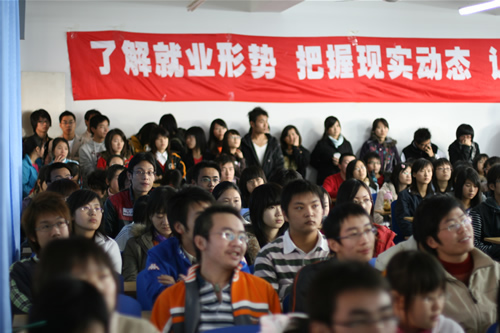 此次讲座不仅使同学们了解了就业形势和现实动态,而且使同学们又一次认清了自我价值,从而不断提高了自身素质。我院就业指导中心将继续组织相关活动,给广大学生以正确积极地就业指导,相信在学院的正确引导和同学们的努力下,天津学院未来的毕业生一定会拥有一个广阔的就业前景。
