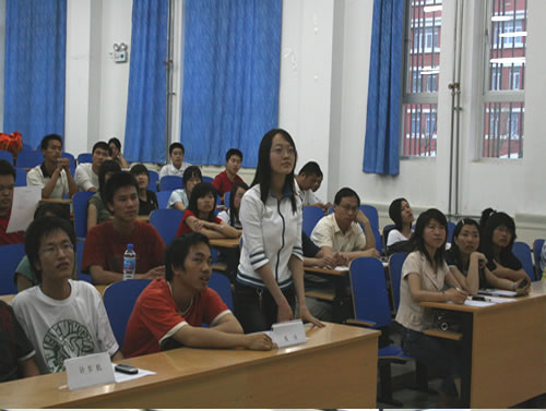 心理知识竞赛分预赛和决赛两个部分,参赛队为06级12个专业代表队。初赛分为必答题和风险题两个环节,各代表队选手积极作答,经过一轮角逐,法学、物流、信管专业各得30分,暂时领先于其它代表队。第二环节的风险题比赛,既考察了选手的知识储备,又考验了临场的发挥水平,各代表队的分数在此环节中拉开了距离。经过初赛,法学、土木、信计、会计、信管、通信六支专业队进入决赛,其它六个专业代表对选择自己支持的队伍成为后援队。