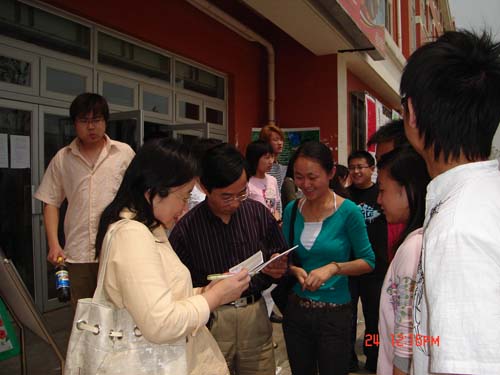 首先,广播站成员向同学们散发了广播站宣传宣传册,内容包括广播站简介、广播栏目介绍、节目时间表等;其次,广播站举行了广播剧演员现场报名与广播剧剧本征集活动,并对广播剧演员招募进行现场咨询;再次,广播站成员组织广大师生为广播站留言,真诚邀请老师及同学为广播站提出建议与意见,并且现场赠送印有“与声音一起成长”的笔记本作为礼品,我院常务副院长郭景文、管理系系主任王宾容、各专业任课老师、辅导员及同学们纷纷为广播站留言。郭院长不仅提笔写下对广播站的建议,还鼓励广播站在充实节目内容的同时,丰富同学们的精神生活,把广播站建设成为传播校园文化的坚实力量。