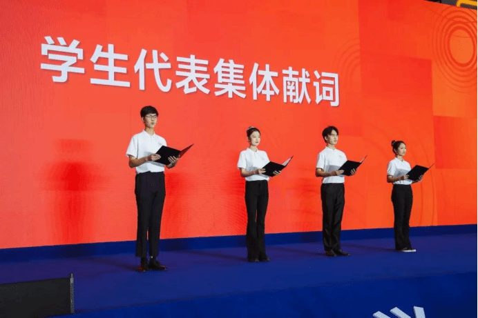 校友代表2013届金融工程专业毕业生白学成、教师代表、基础部主任、北京市教学名师范玉妹教授分别发言,学生代表集体献词。
