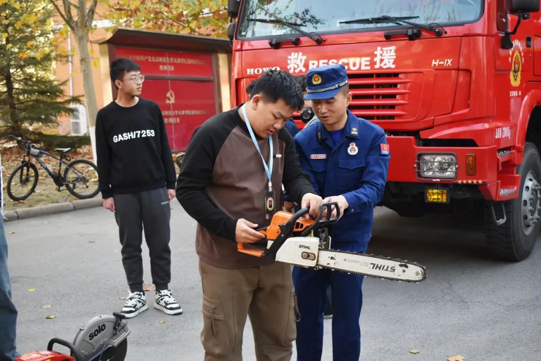 2024年11月9日是第33个全国消防日,今年的主题是“全民消防,生命至上”。为贯彻落实习近平总书记关于安全生产和消防安全重要指示批示精神,进一步提升广大师生安全意识和自防自救能力,11月6日,学院邀请京津新城消防站指战员参与学院119校园安全文化节线下宣传活动,学工保卫党支部全体党员出席活动现场。