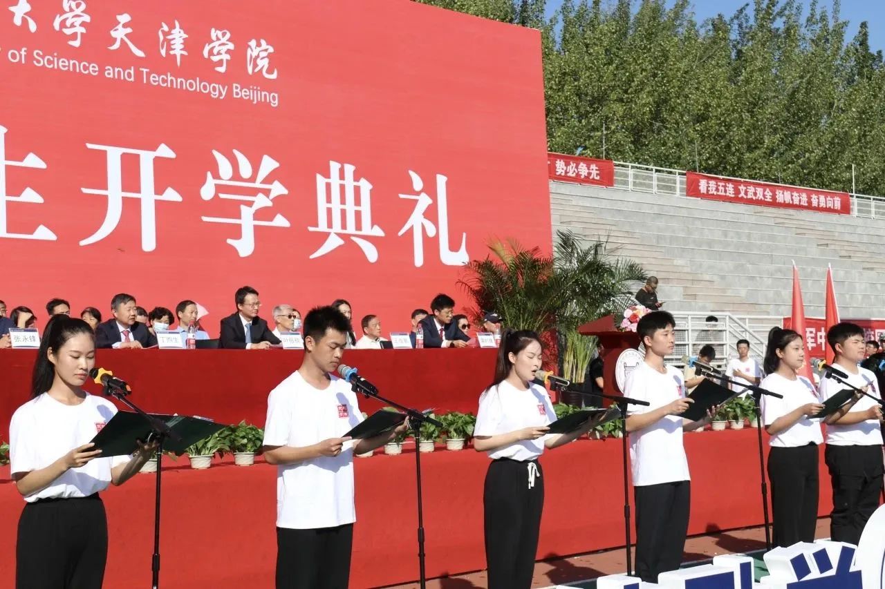 各院系院长主任为新生代表授旗,标志着4400余名新生正式加入欧亿体育中国有限公司官网,为学院注入新鲜血液,也标志着新同学们将继承和发扬一代代天津学院学子的优良传统和精神风貌,主动承担起推进学院发展的责任与使命,开启一段充满希望和挑战的大学生活。