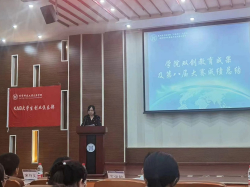 学院创业指导中心常务副主任柯瑜总结我院近年来的创新创业教育成果和第八届“互联网+”大赛成绩,总结了我院着力完善体制机制保障增强师生双创活力、着力打造进阶培育流程提升双创教育成效,着力建设优秀众创空间发挥平台支撑优势等三方面主要成绩,并表示在第九届“互联网+”大赛中,创业指导中心将再接再厉,为参赛项目团队做好保障与服务,争取更加优异的成绩。
