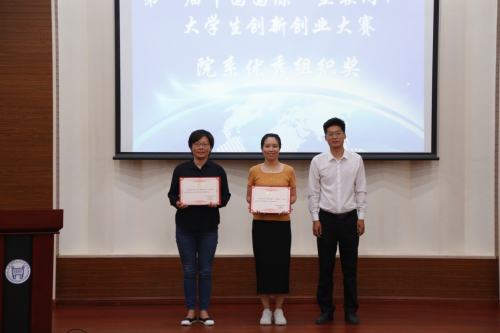 随后进入第八届国赛市赛获奖项目颁奖环节,学院副院长兼财务总监王俊敏、党委副书记赵志南、创业指导中心常务副主任分别为获得天津市赛金银铜奖的25支团队颁发证书,党委副书记栗时锋为“优秀院系组织奖”信息工程学院和法律系颁奖。