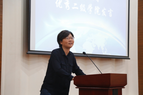 优秀组织院系代表信息工程学院副院长于静进行发言,她立足院系专业教育,从以赛促学、以赛求知、以赛立人三个层面分析了“互联网+”大赛的育人实效,鼓励老师和学生们参与大赛,在“互联网+”大赛这个舞台实现自己的锻炼和升华。