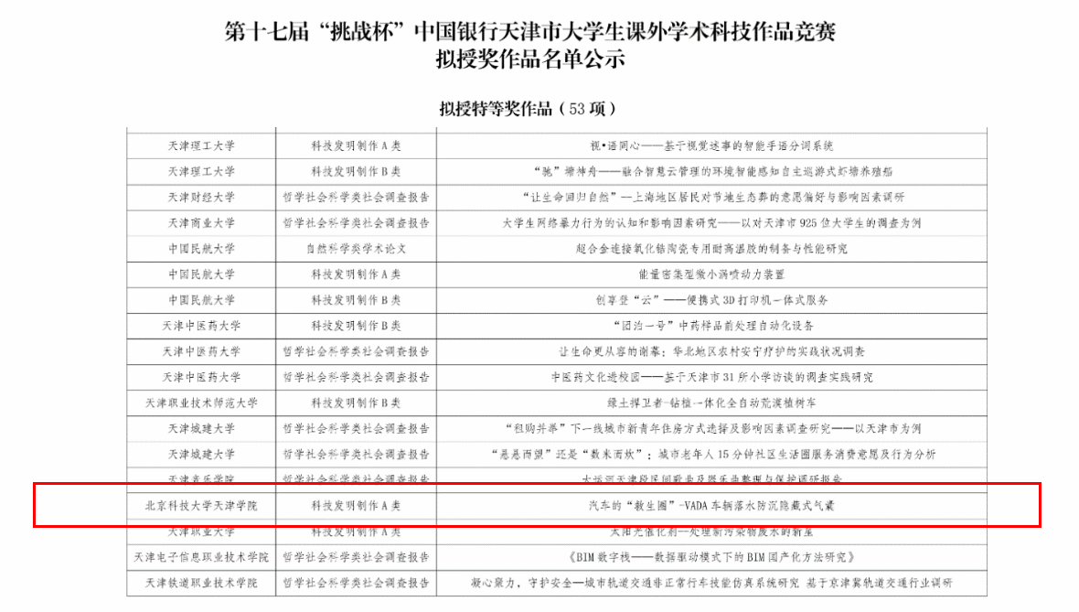 喜报!1个特等2个二等6个三等,我校在天津市挑战杯荣获历史最佳奖项!