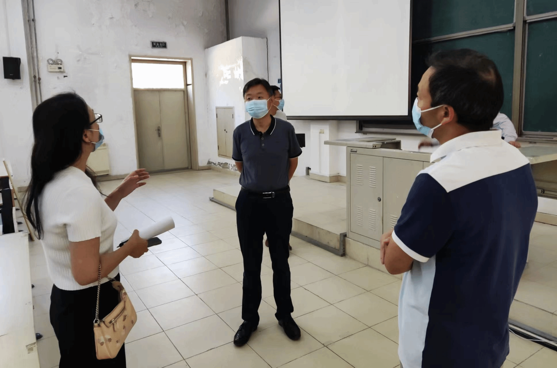为保证期初教学工作正常运行,确保在全面恢复线下教学后给师生们提供一个良好的教学环境,9月2日上午,学院院长、党委书记丁煦生等全体班子成员率教务处、基建产业处、后勤处、实验室管理中心、信息化建设与管理办公室、图书馆、教学质量监控中心、评建办等有关部门负责人,分六个小组深入3教、5教、6教、7教、8教、9教、10教、12教(艺术学院)、体育馆、理工馆、舞蹈排练厅等教学一线,对开课前教学保障情况进行全面巡视巡查。本次检查是学院落实教学工作中心地位、树立“教学中心”鲜明导向的一项重要举措。分组检查开始前,丁煦生院长做了工作动员,提出了工作要求。
