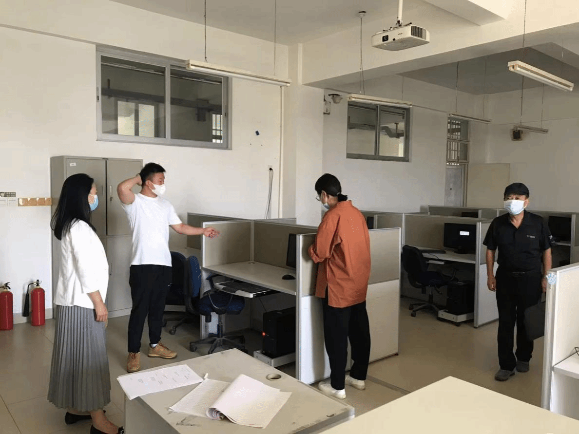 党委副书记、副院长叶振楠带队检查了10教和12教艺术学院教室。10教是学院最大的实验楼,其中包含机房、语音室及实验室等,叶振楠副书记认真地检查了每一间教室,指出了存在的问题,叮嘱相关部门及时调试设备,确保上课能正常运转。